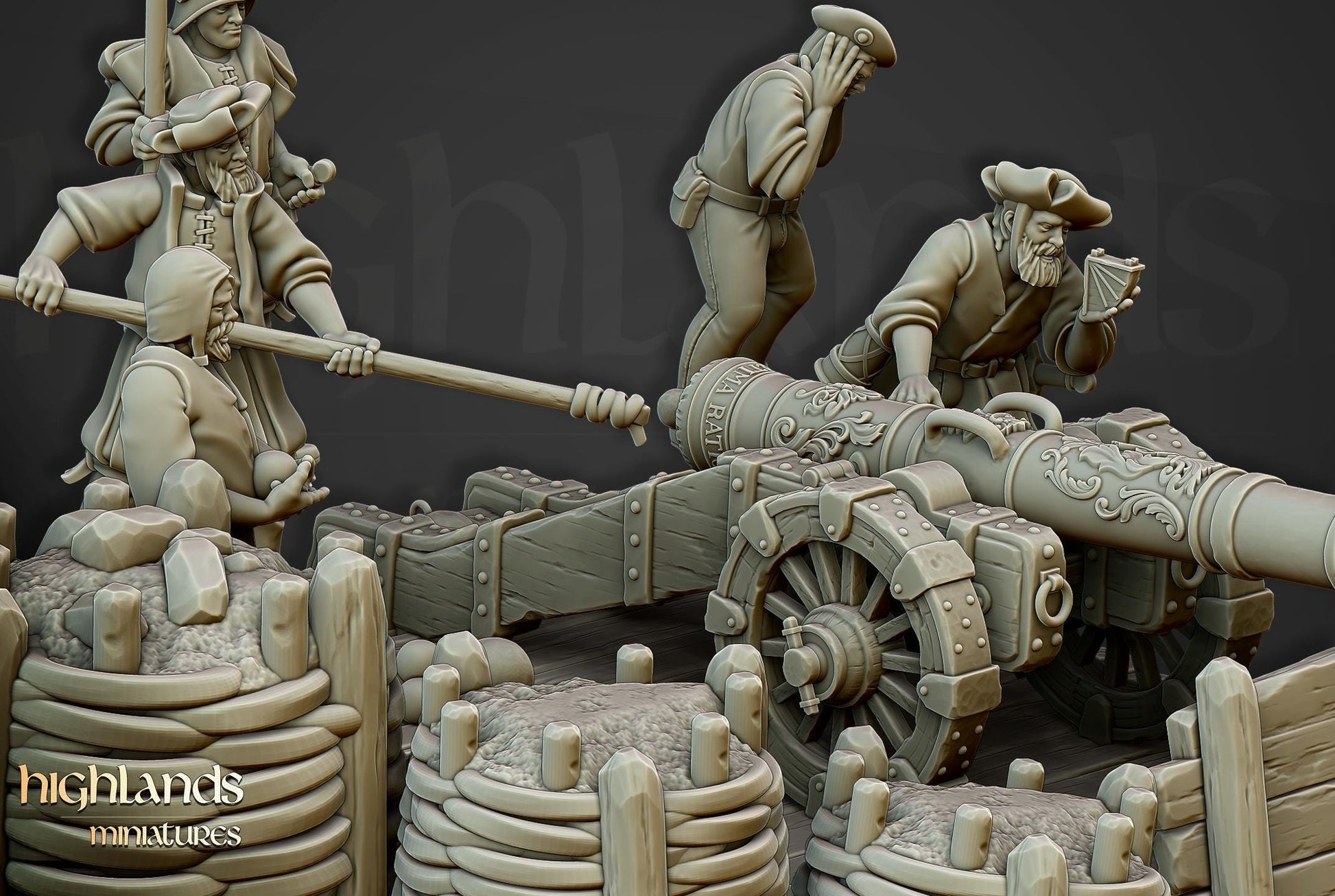 Models by Highland Miniatures. Nokken Studio is a licensed seller of Highland Miniatures' prints. Highland Miniatures STL files can be found here: https://www.myminifactory.com/users/Highlandsminis